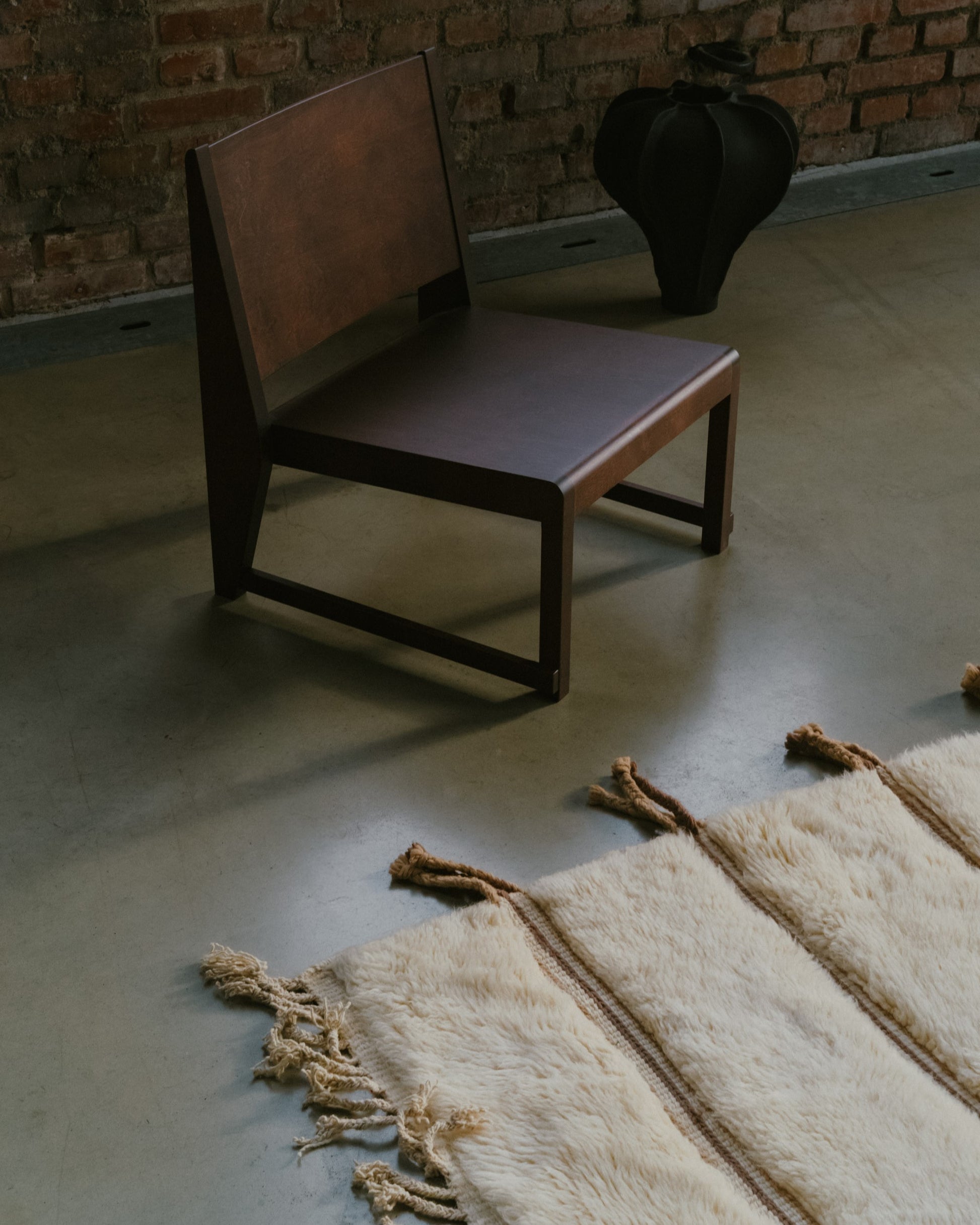 Hand-knotted in Morocco from 100 % mountain sheep wool, each rug is shaded with natural plant- and mineral-based dyes. The dense, velvety pile comes in earthy tones—from soft ivory to deep terracotta—free of synthetics or chemical finishes.