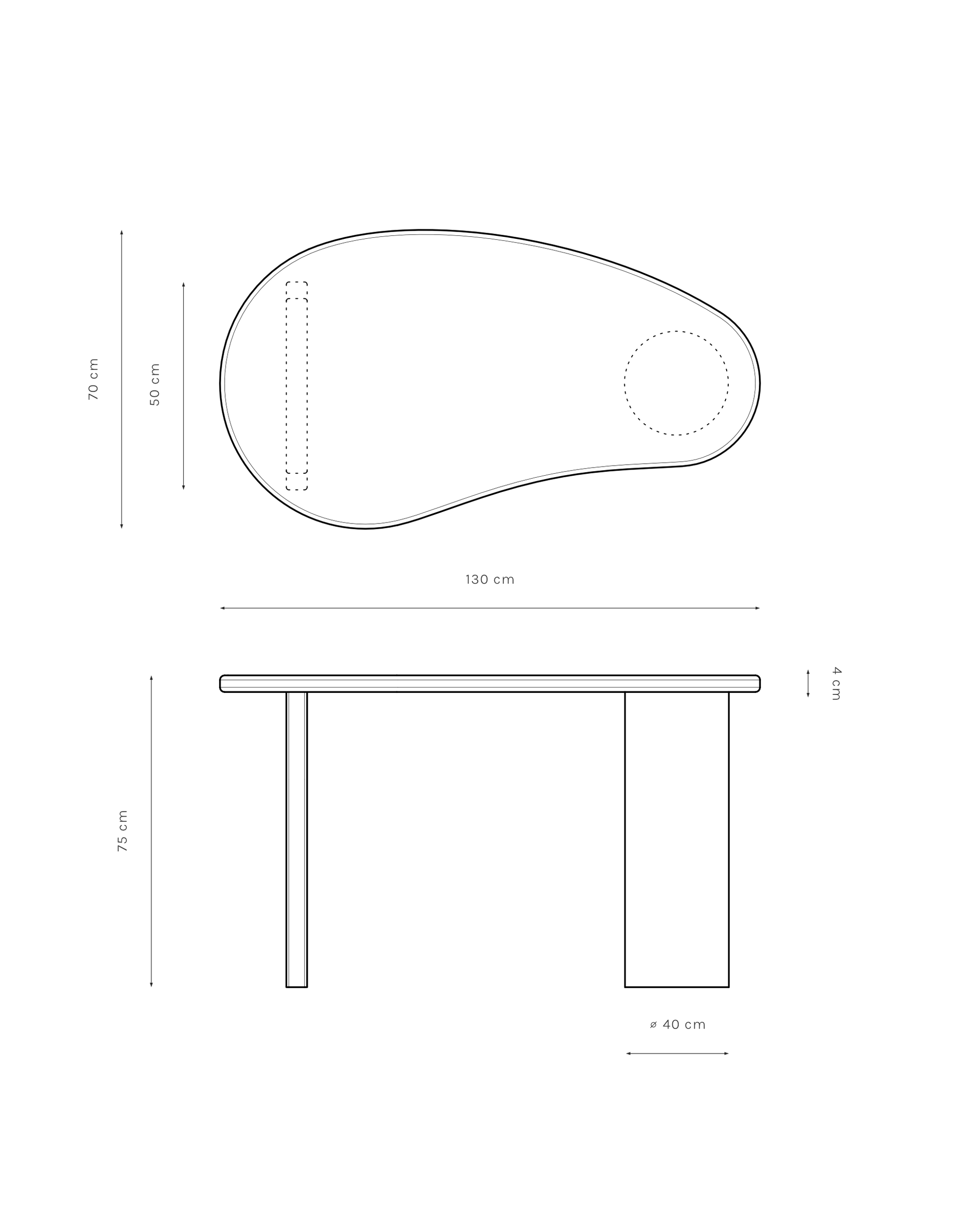 The base of each table is made from solid wood, MDF or particle boards, PVC, or concrete (used as internal ballast). Each material is carefully selected and crafted to ensure long-lasting stability, structural strength, and a refined, minimalist aesthetic.