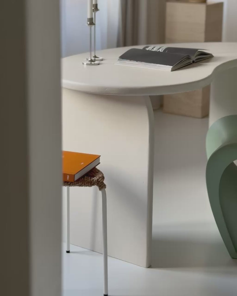 The Kanso desk features a softly curved, asymmetrical shape and a hand-applied microcement surface. Its kidney-like form works well in open spaces and brings a sense of balance. With enough room for work, writing, and everyday essentials, it’s a practical piece that combines clean design with a calm, sculptural feel.