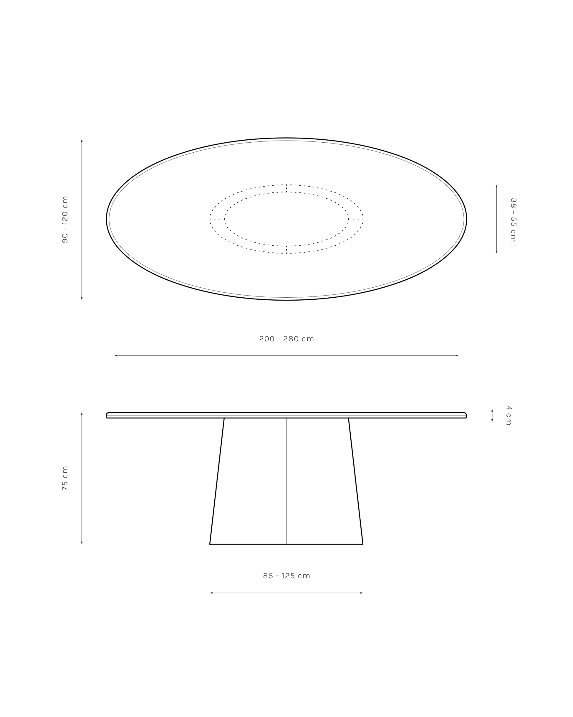 Kanso Arc is a dining table with an elliptical top and a tapered central base. Its clean geometry feels balanced and easy to integrate into different interiors.