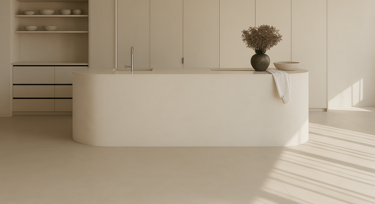 Microcement floors create a thin, joint-free, waterproof surface, ideal for bathrooms, showers, and